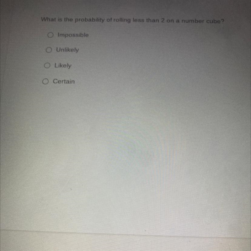 What is the probability of rolling less than 2 on a number cube?-example-1