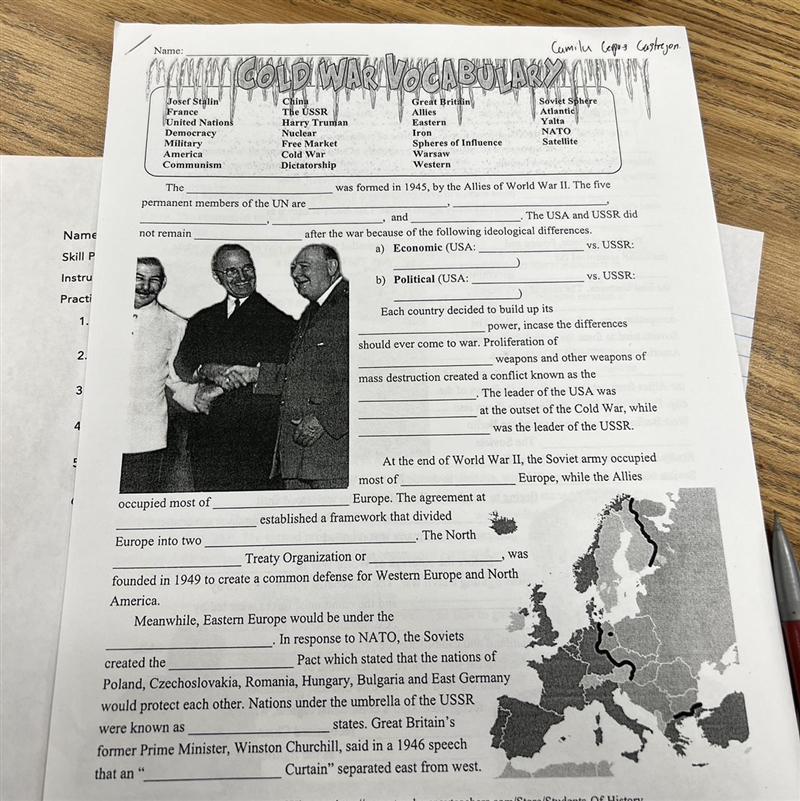 At the end of World War II, the Soviet army occupied most of Eastern Europe, while the Allies occupied most of Western Europe. The agreement at Yalta established a framework that divided Europe into two Spheres of Influence. The North Satellite Treaty Organization or NATO, was founded in 1949 to create a common defense for Western Europe and North America.