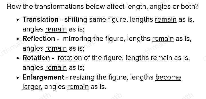 For each transformation below, state whether the lengths, angles or both are invariant.