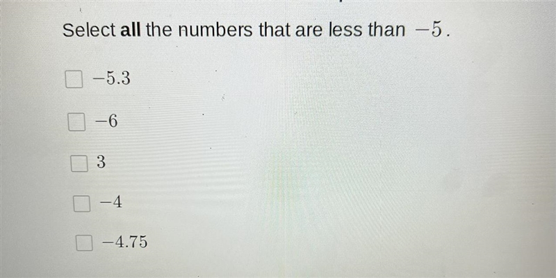 Select all the numbers that are less than -5