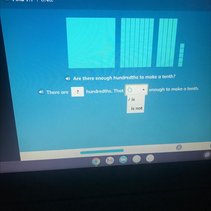 Answer: No, there are not enough hundredths to make a tenth. One tenth is equal to 10 hundredths
