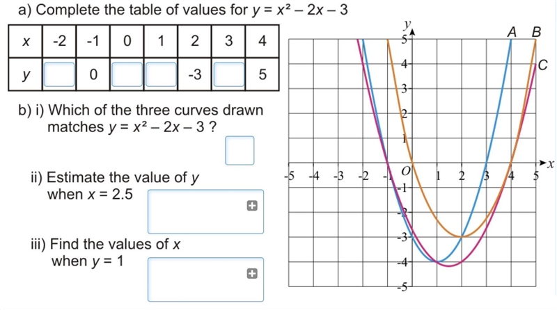 You can either graph and follow the points or plug in each x coordinate for these responses.