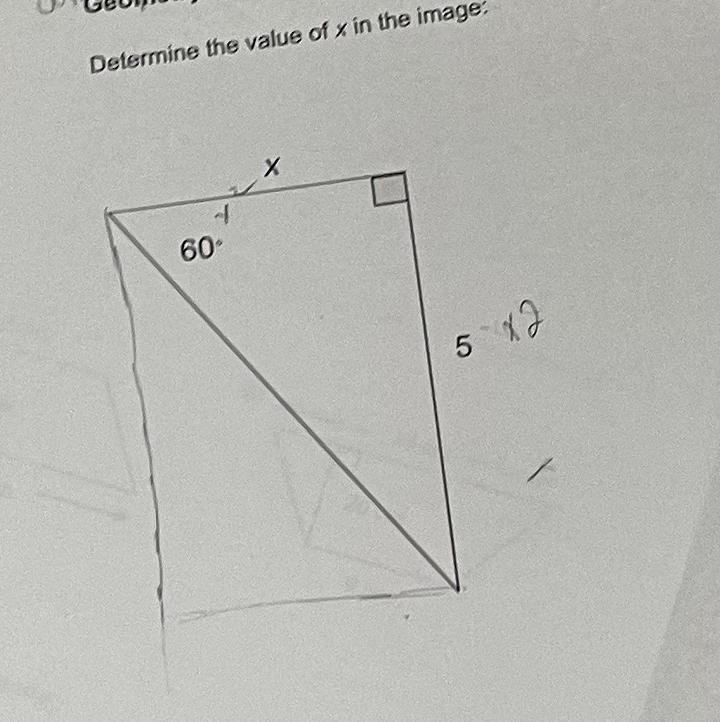 We can use the Sine rule, which states (in our question) (x / SIN 30) = (5 / SIN 60).