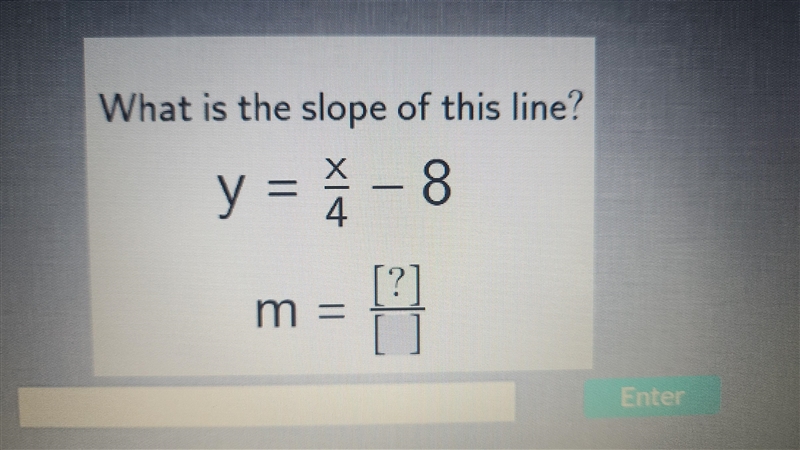 Please help me again! What is the slope of this line? Answer must be a fraction... Much appreciated, friends!♡♡ ♡\(´▽ `)ノ♡