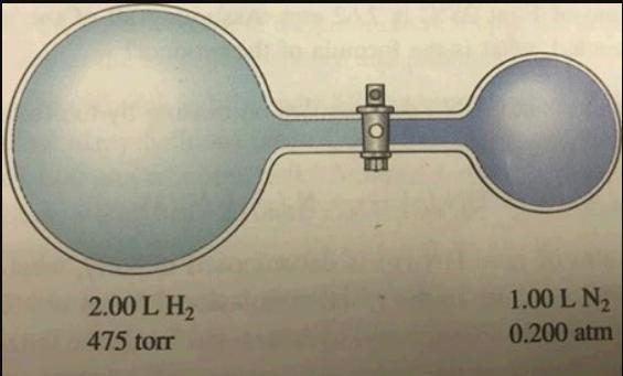 after the stopcock between the two flasks is opened can be calculated using the ideal gas law, which states that the pressure of a gas is directly proportional to its volume.