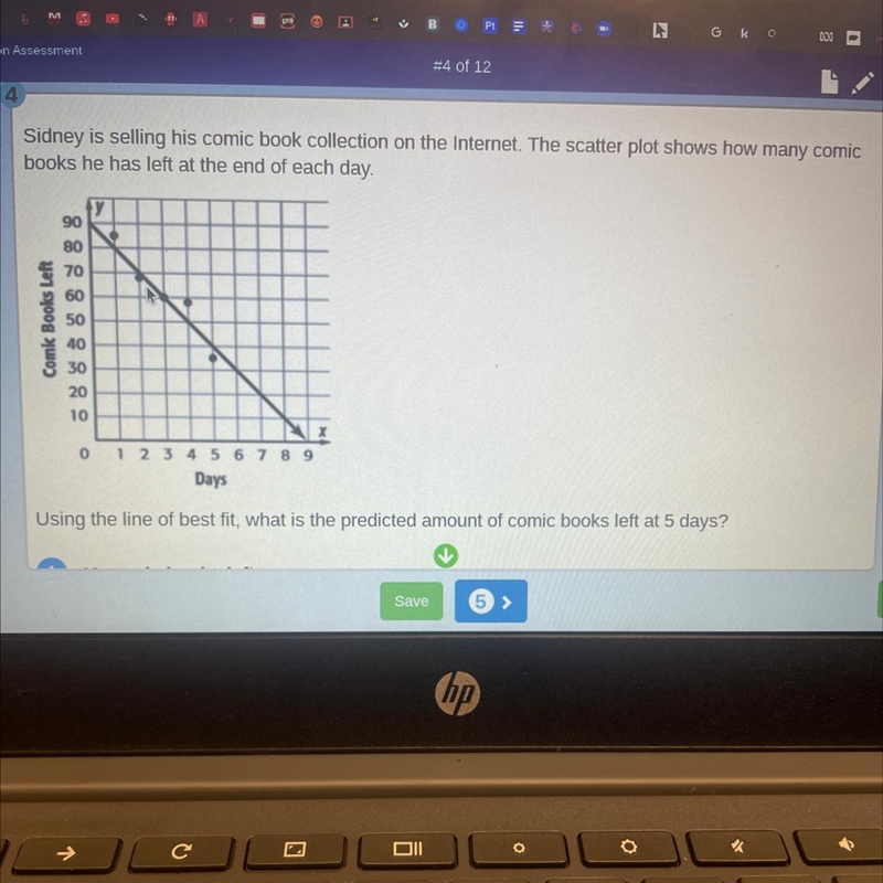 Step-by-step explanation: if you go over to the 5 days and go up you will see a dot now if you go all the way to the left on the same middle the dot is on it will land on 35