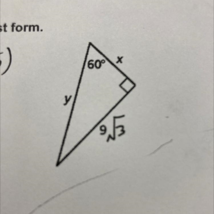 You want the shortest and longest sides of a 30°-60°-90° triangle that has a middle-length side that is 9√3 units.