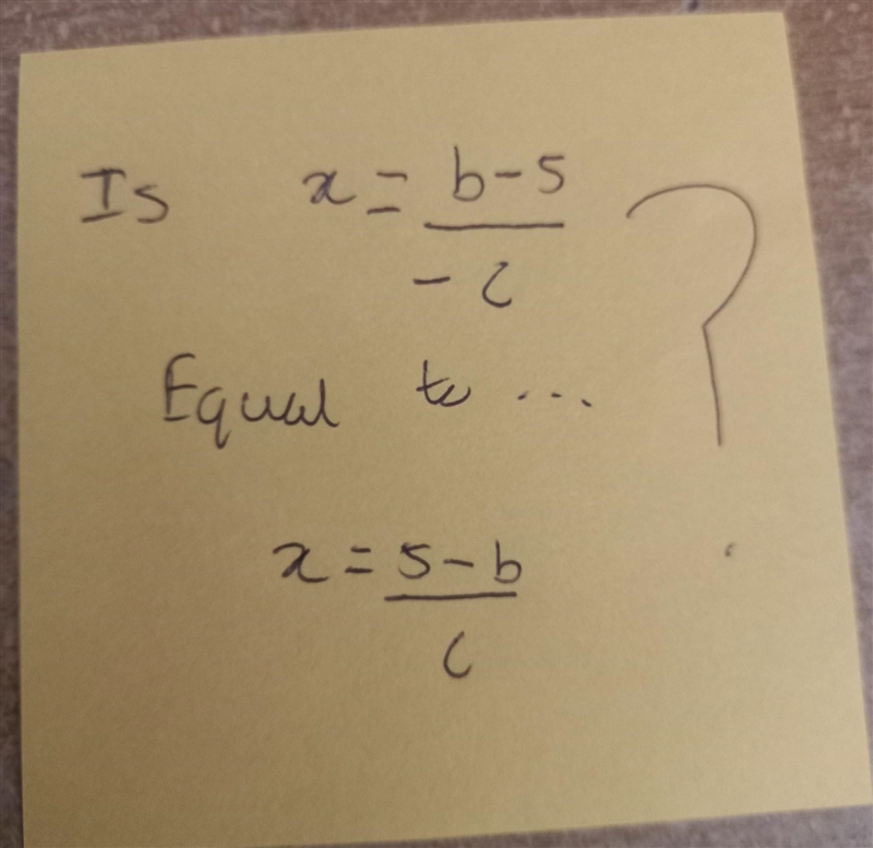 a= s-b/c ... addition is commutative. so yes it is equal.
