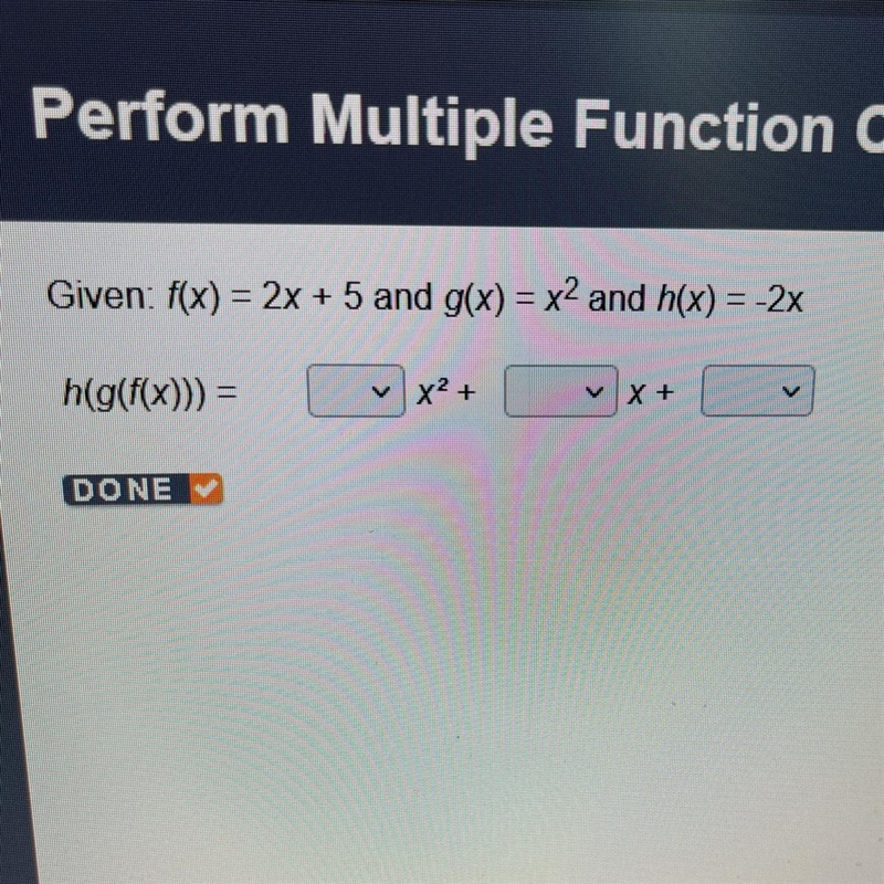 Finally, you find h(g(f(x))) by plugging g(f(x)) into the expression for h(x):