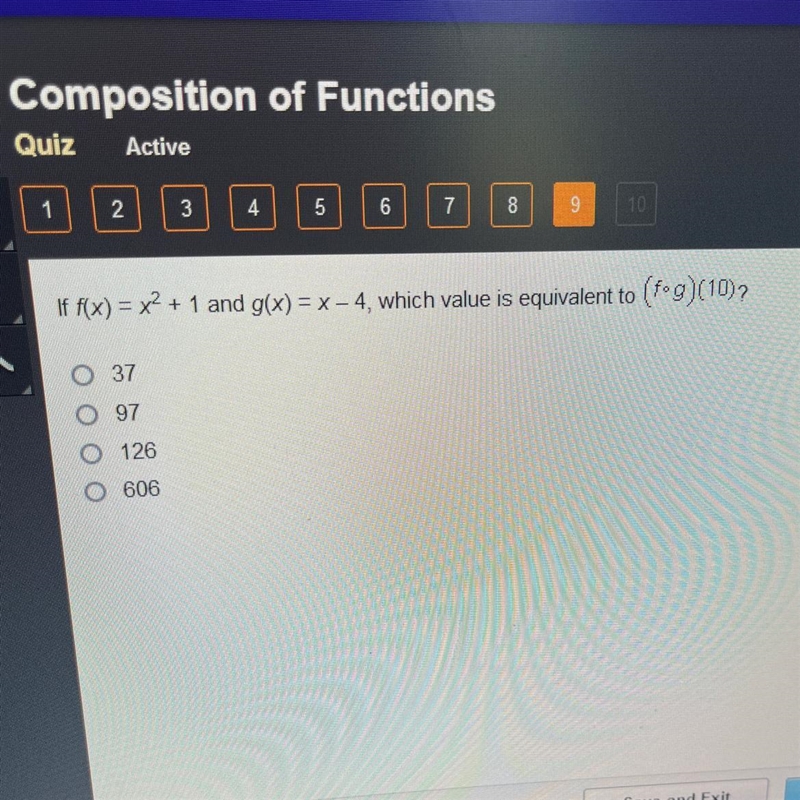 (fog)(10) = f(g(10)) = f(10-4) = f(6) = 6^2 + 1 = 37