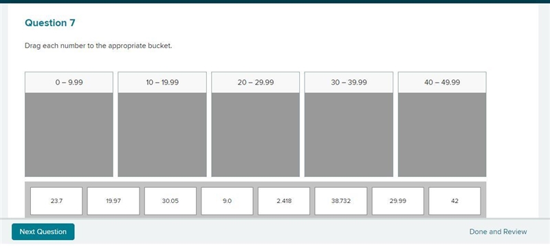 for example 23.7 you put the number in the bucket number 20-29.99