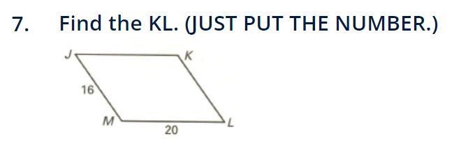 If the shape is parallel and congruent, then it would be 16 for KL just like JM
