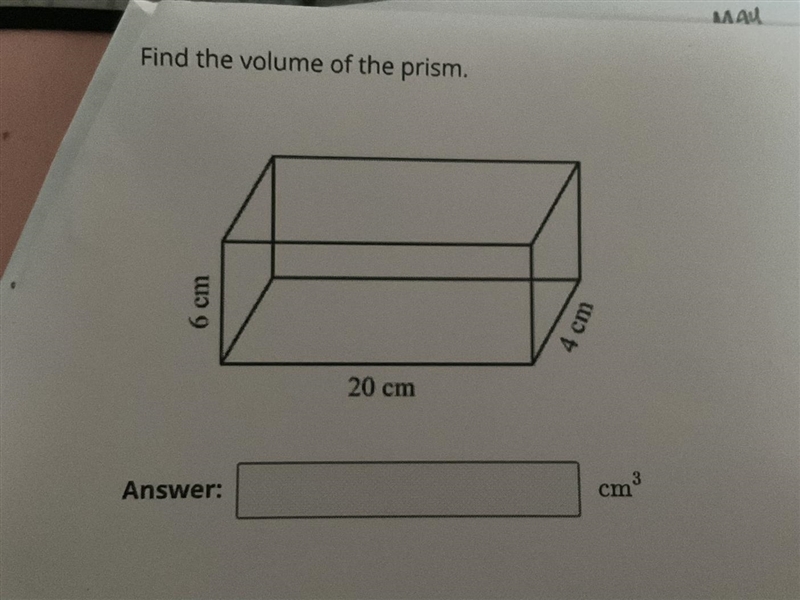 You would do the equation l*w*h (20*4*6). Then when you get the answer you would get the answer 480cm2.