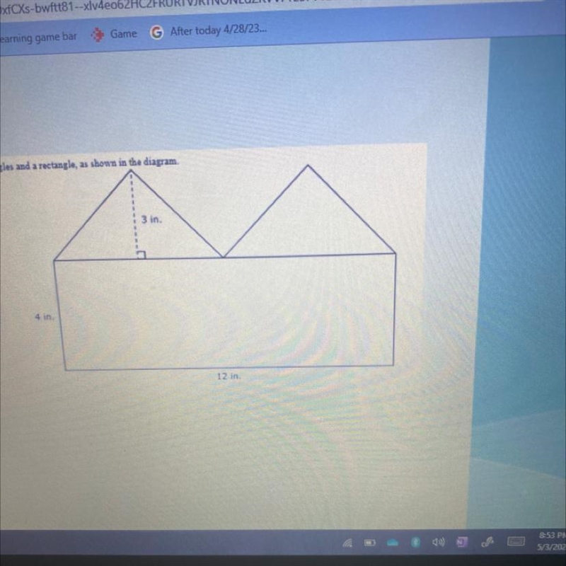 To get the base of the triangles, just divide the rectangle into 2 equal parts. Base of 1 triangle = 12÷2 = 6 inches