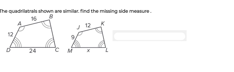 given quadrilaterals ABCD and JKLM are similar then the ratios of corresponding sides are in proportion, that is
