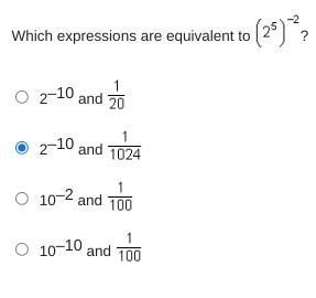 Which expression are equivalent to(2^5)^-2?