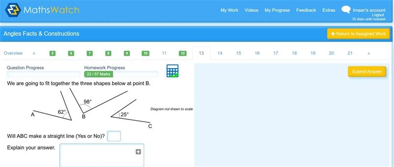 their sum doesn't make 180° (I.e. straight line) so ABC won't make a straight line