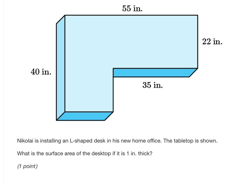 The first step of finding the surface area of this to make it easier is to make it into two separate rectangles. Next, you find the are of the first rectangle.