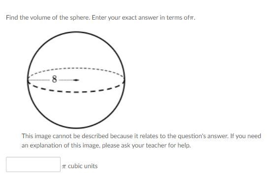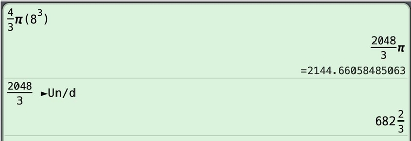 V = 4/3π(8³) = 2048/3·π . . . . cubic units