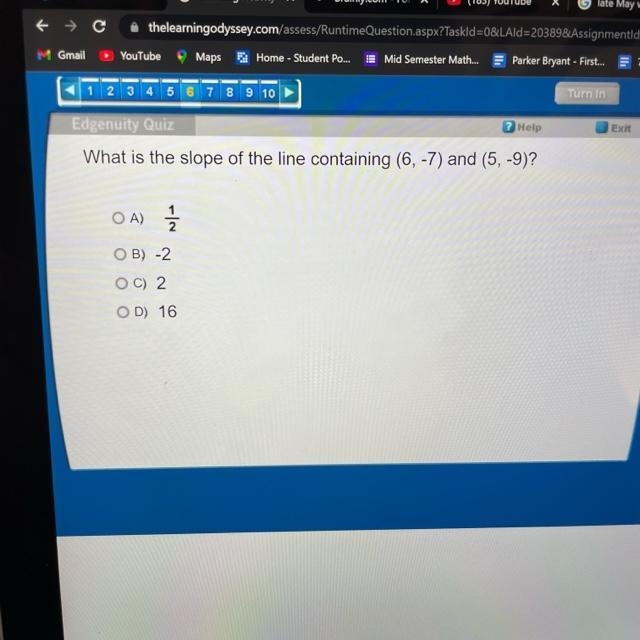 = (-7 - -9) / (6-5)