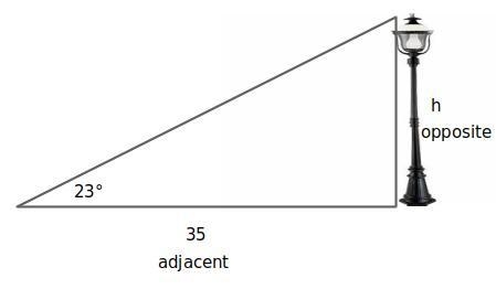 A light pole casts a 35-foot-long shadow. The angle of elevation from the tip of the shadow to the top of the light pole is 23°. To the nearest foot, what is the height of the light pole?