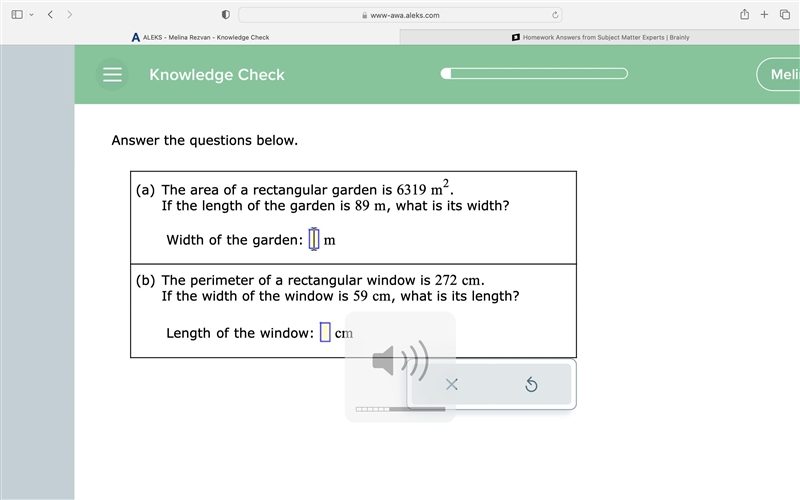 We can check our answers for (a) and (b) by plugging in the length and width for (a) into the area formula and seeing whether we get 6319 and plugging in the length and width for (b) into the perimeter formula and seeing whether we get 272