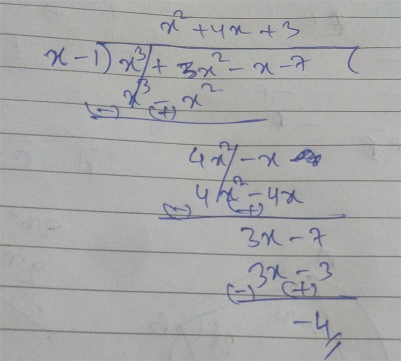 Solve using long division, (x^3+3x^2-x-7)/(x-1)