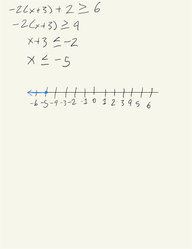 Very Easy! PLS Solve the inequality -2(x + 3) + 2 ≥ 6. Then graph the solution. 20PTS