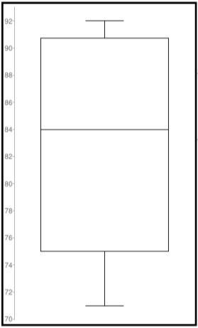a) median is 84, that's the line in the middle of the box (rectangle)