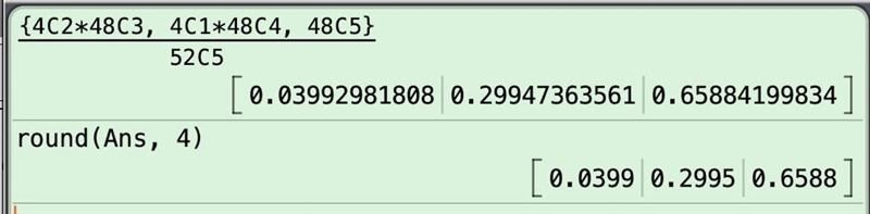 P(2 aces) = 4C2 · 48C3 / 52C5 ≈ 0.0399