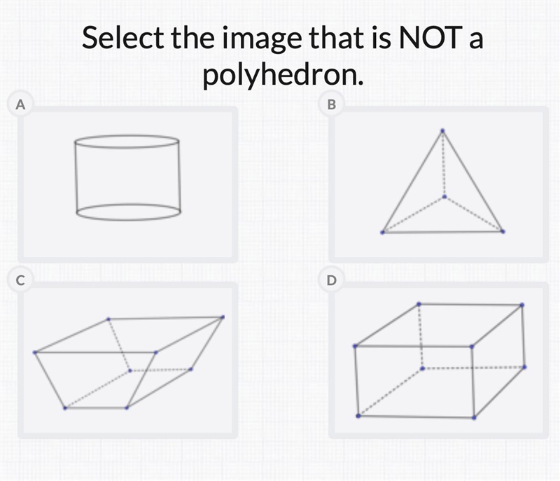 A polyhedron is a solid figure with plane faces. The curved side of figure A means it is not a polyhedron.