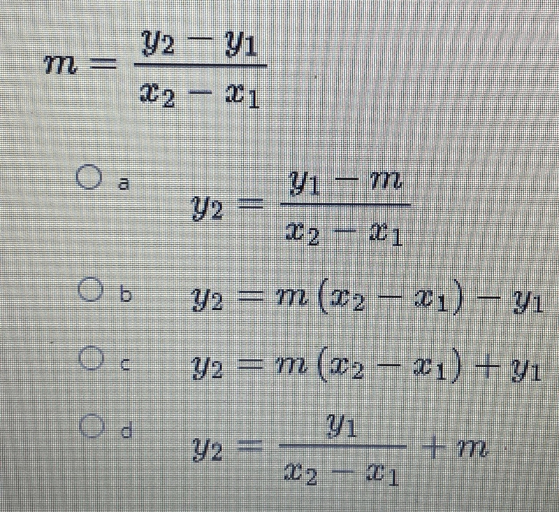 SO THE ANSWER IS Y2 =M(X2-X1)+Y1