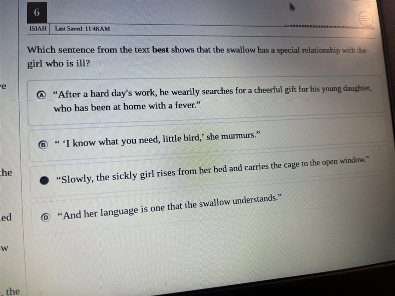 Option D shows that the girl and the bird have a connection to each other. The bird understands her.