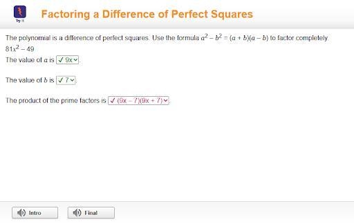 To factor the polynomial completely, we use the formula (a + b)(a - b). Substituting the values of a and b, we have:
