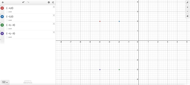 First, graph the points. You can count the units of the length and width of the rectangle. For the length, you'll get 5 units, and for the width, you'll get 2 units.