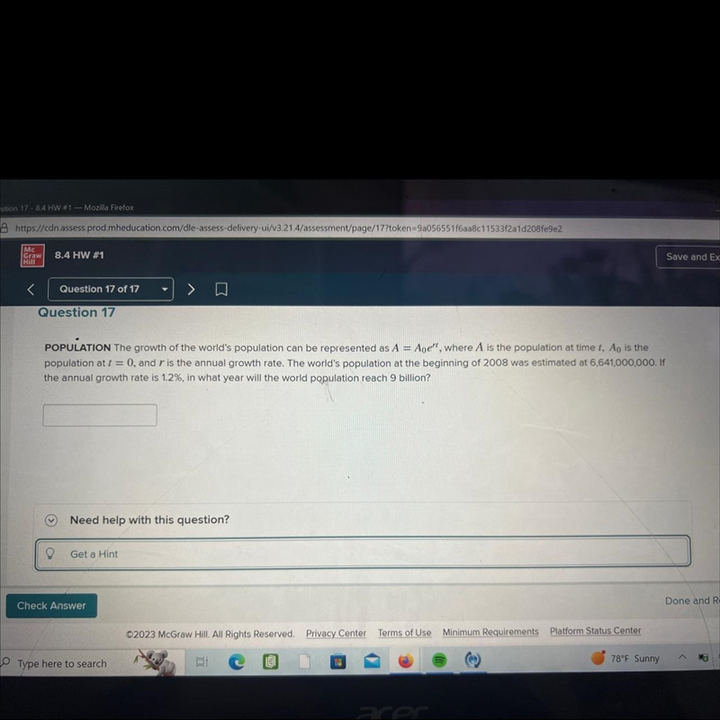 1.355 = e^(0.012*t)
