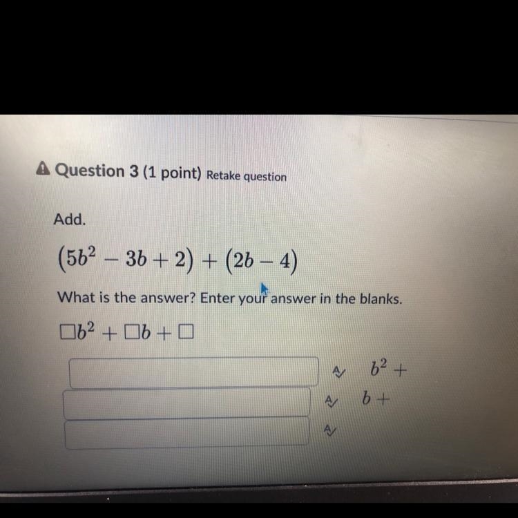 Add. (56² − 3b + 2) + (26 — 4) What is the answer? Enter your answer in the blanks.