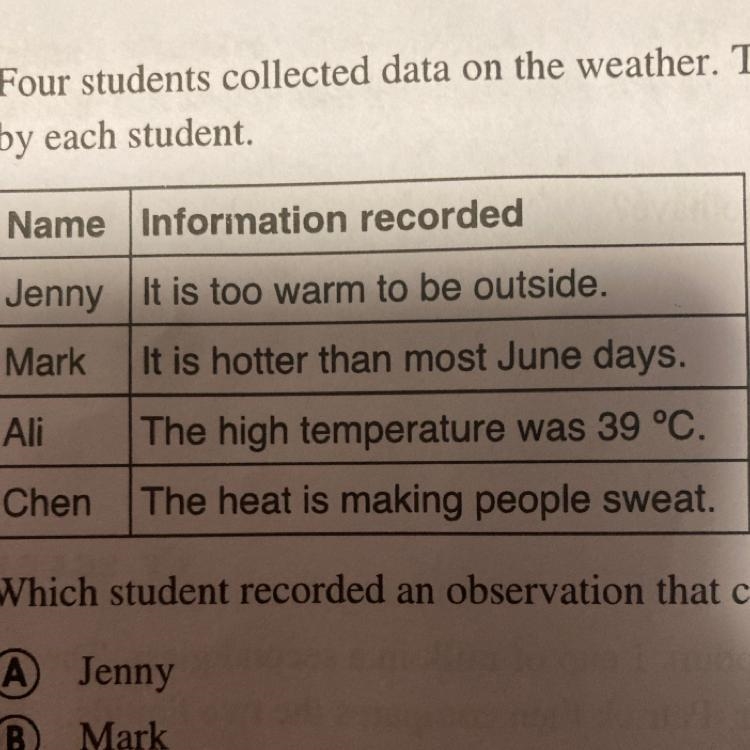 Four students collected data on the weather. The table below shows the information recorded