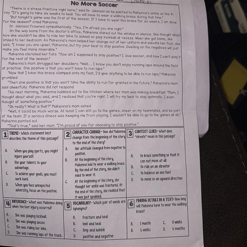 Makenna was only looking at the negative side of her injury at the beginning of the story and then toward the end she became positive.