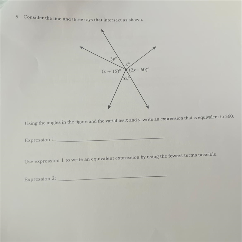 Expression 1: 3y+x+52+(2x-60)+(x+15)+52=360