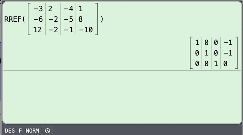 The coefficient of the y-variable is 2 or -2, which means we can eliminate y terms by adding pairs of equations. Adding the first equation to each of the other two reduces the system to ...