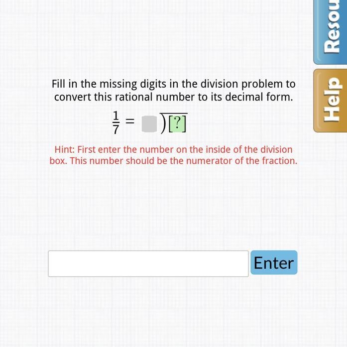 Here, the fraction is 1/7 which means we need to divide 1 by 7 (1 ÷ 7)