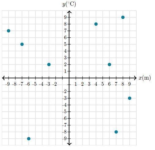 Lo graphs the relationship between temperature (in ° C) and elevation (in m) in 9 different cities on the coordinate plane below. What is the temperature in the city with an elevation of -9 m?