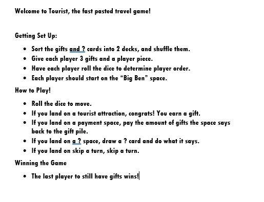 For the game board, since it has to come with 40 spaces, just keep repeating the 4 spaces, changing each landmark as you go along. You can do a different design for the middle if you'd like, as well as a different color scheme.