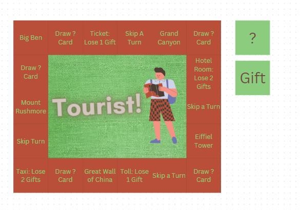 The ? cards say various things on the back, and either add or remove gifts, or move spaces. Some examples are below if you need them: