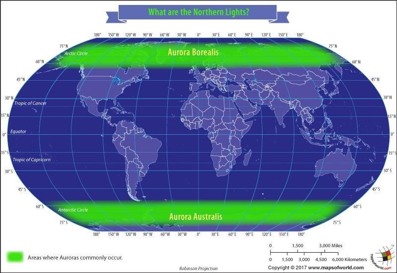 The Aurora borealis, or northern lights, are visible in the Nordic nations because _____.