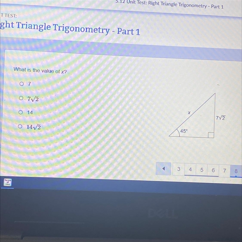 angle 90° is opposite the side x. angle 45° is opposite side 7√2.