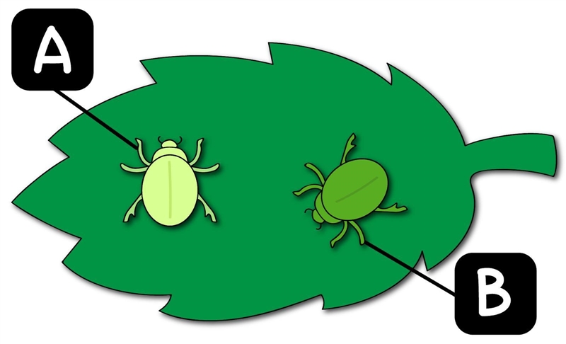 Which type of variation (differences) can be seen in the beetle population shown above? A. coloration B. antenna length C. number of legs D. size (NEED HELP ASAP)