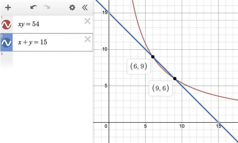 The smallest sum of two factors will be 2√54 ≈ 14.7. This tells you that the sum of 15 will involve factors that are close to √54 ≈ 7.4. You find the factors of interest when you consider divisors that are near 7: 6 and 9.