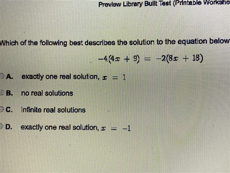 Answer: Infinite real solutions